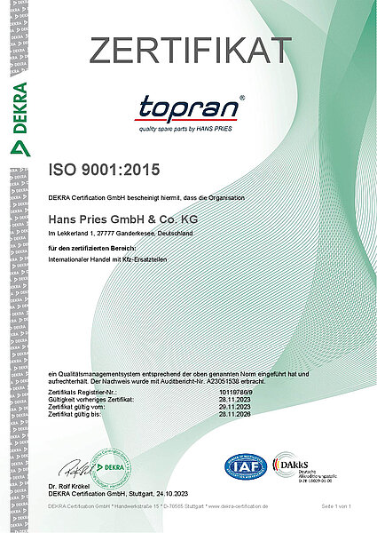 Die herausragende Qualität unserer Produktdaten im TecDoc-Katalog ist ein besonderes Merkmal unseres Unternehmens. Wir legen nicht nur bei unseren Produkten, sondern auch bei unseren Daten höchsten Wert auf Qualität und Zuverlässigkeit. Als stolzer Datenlieferant in TecDoc wurde die Marke TOPRAN von der TecAlliance® mit der Zertifizierung als „Premier Data Supplier“ (PDS) ausgezeichnet.